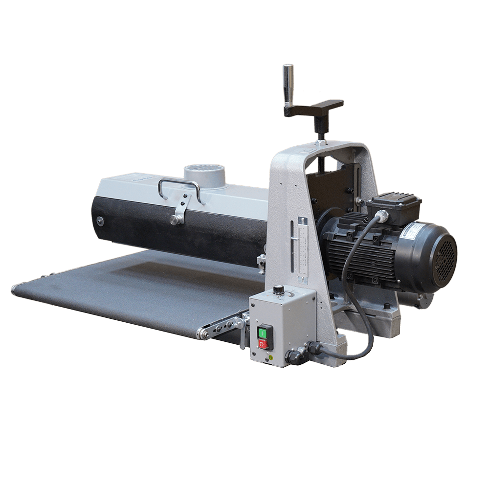 - Конвейерный стол шире барабана, обеспечивая дополнительную опору при шлифовании заготовок большого размера