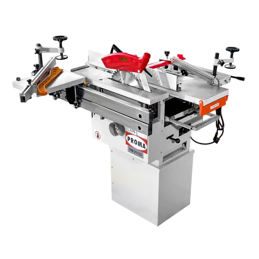 Комфорт эксплуатации обусловлен рельефной формой рукоятей комбинированного деревообрабатывающего станка PROMA CWM-210-5/220 35210000;