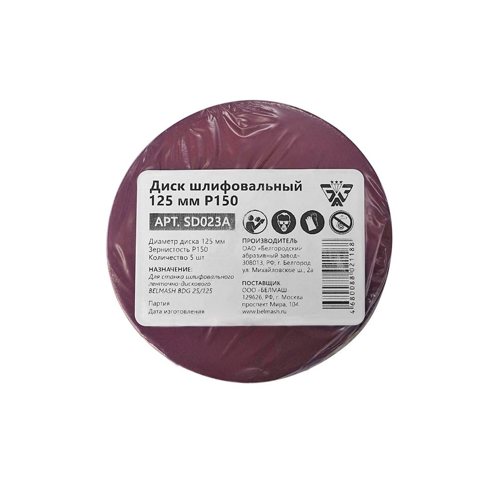 Диск шлифовальный диаметром 125 мм, зернистостью P150. Применяетcя на станке BELMASH BDG 25/125