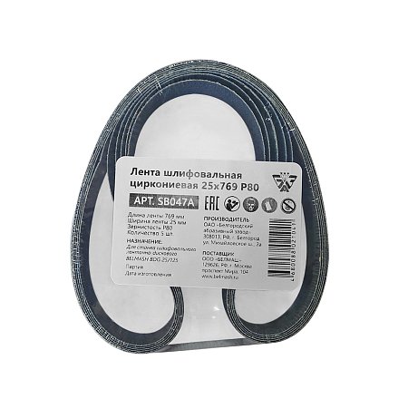 Лента шлифовальная циркониевая. Длина 769 мм, ширина 25 мм, зернистость Р80 грит. Применяется на ленточно-дисковом шлифовальном станке BELMASH BDG 25/125